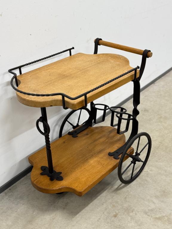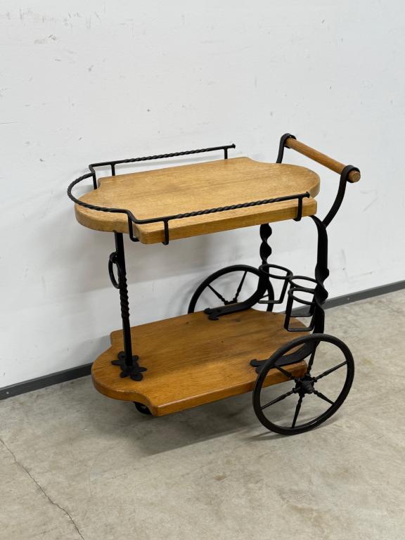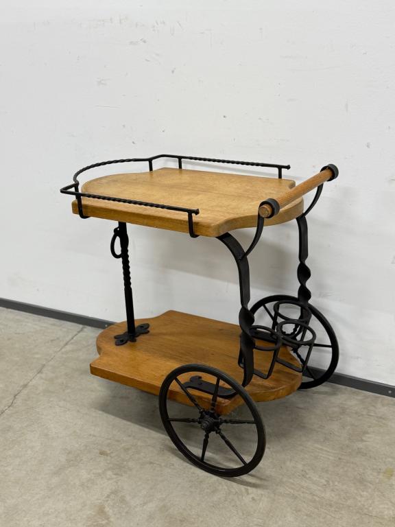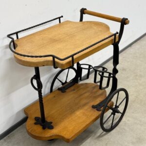 Sepistatud raami ning paksust tammest plaatidega serveerimiskäru. Väga stiilne ning praktiline. Rattad liiguvad kergesti. Mõned kasutusjäljed plaatidel.
