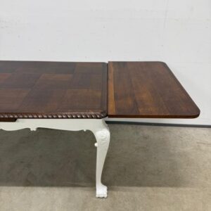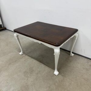Kauni nikerdatud raamiga chippendale stiilis söögilaud. Laud on pikendatav, pikendusplaadid asuvad põhiplaadi all ja on külgedelt väljatõmmatavad. Laua mõõdud: laius 134 cm + 2 x 53 cm, lühema külje laius 94 cm. NB! Lauaplaadil spoonidefektid – ei paista silma, kuid siiski olemas!