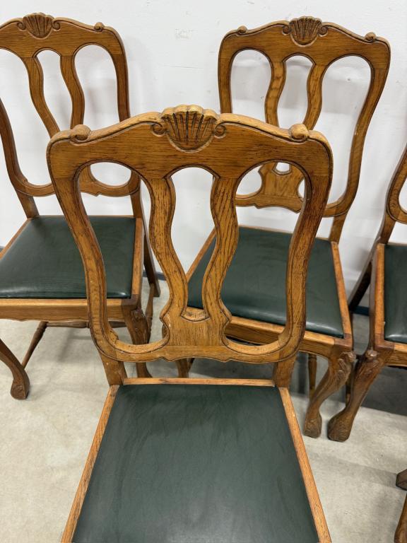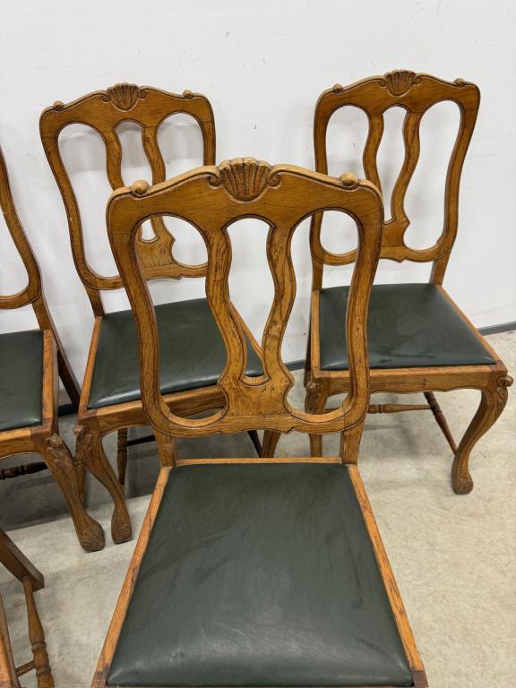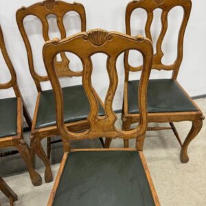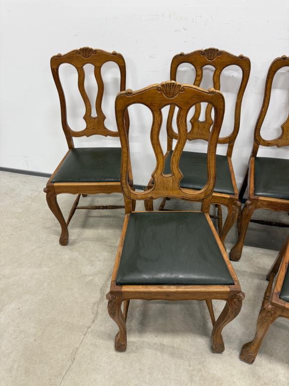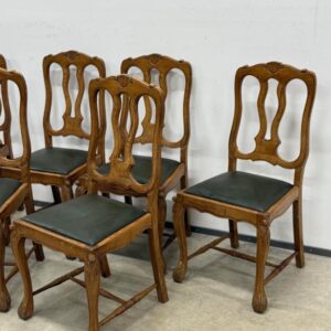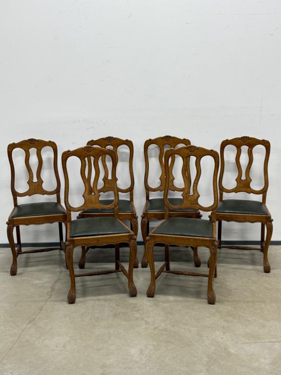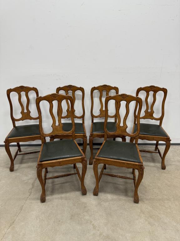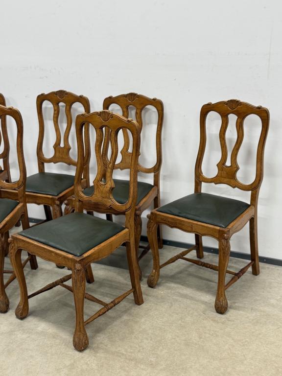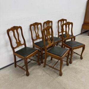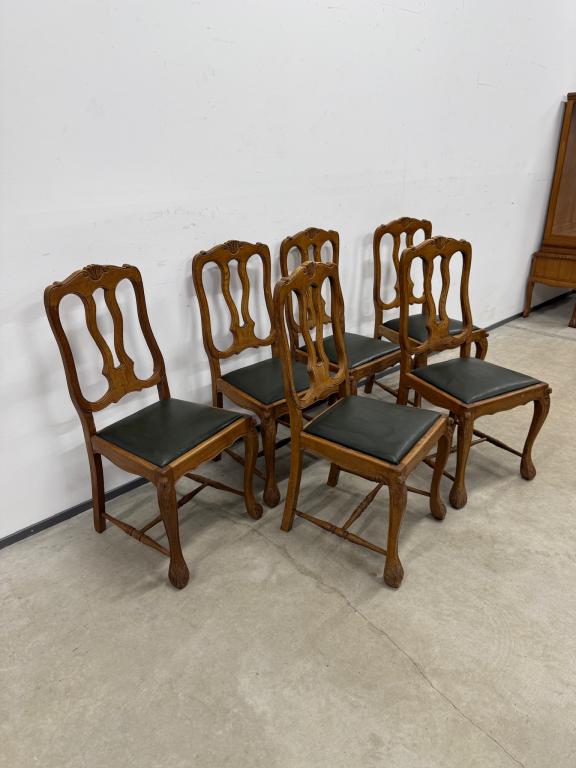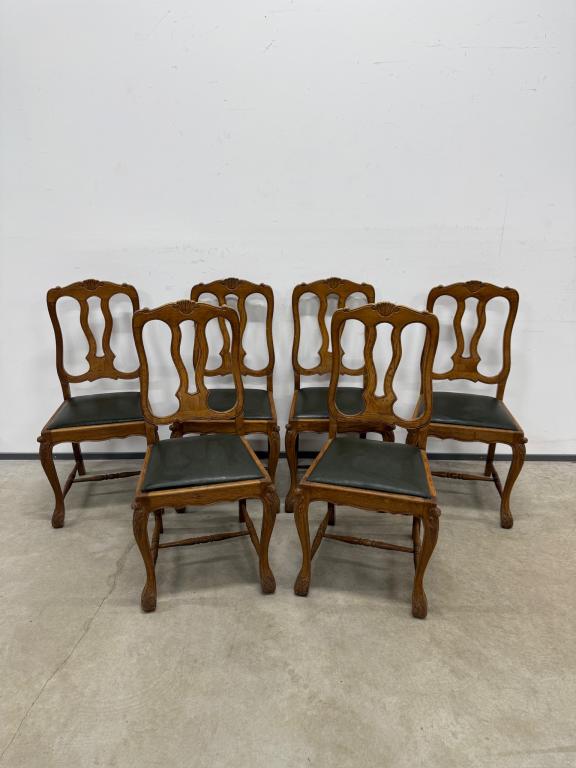 Kuus nikerdatud raamiga tammest söögitooli. Leidub kulumis- ja kasutusjälgi. Müügil komplektina.