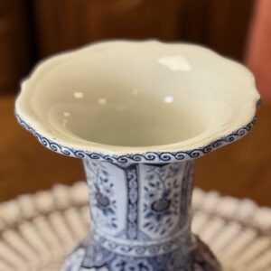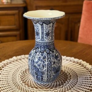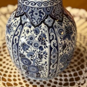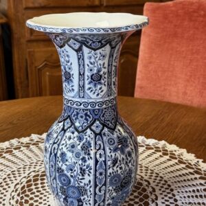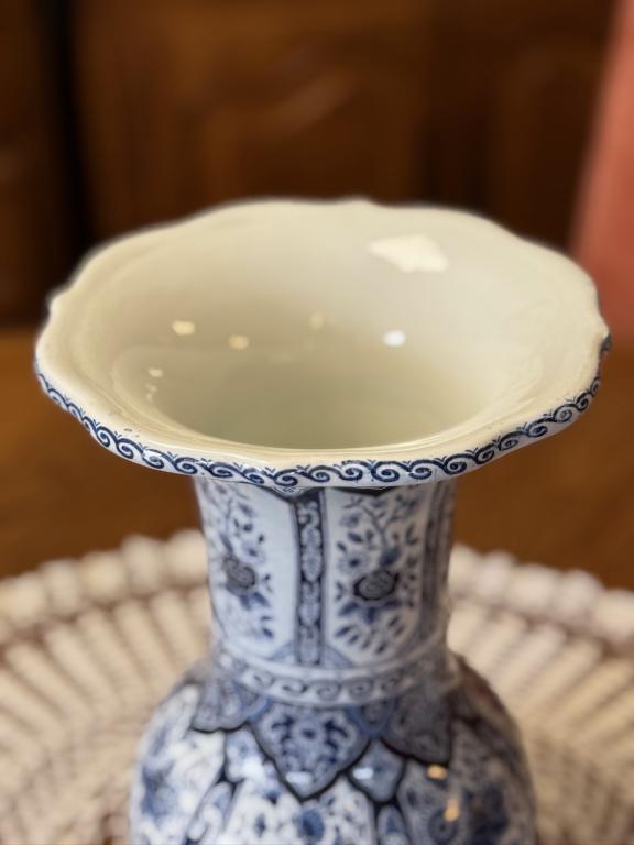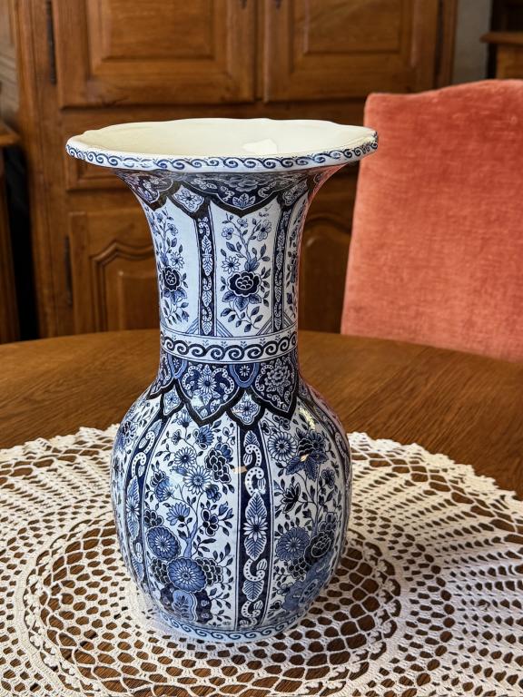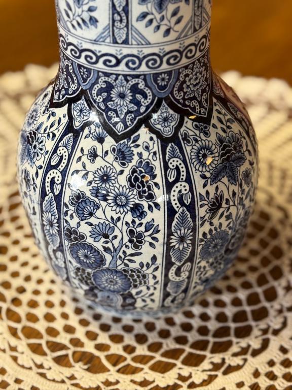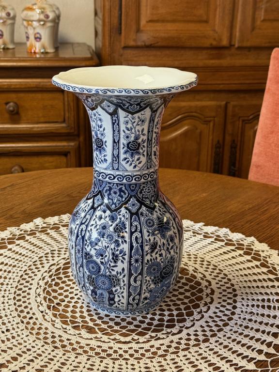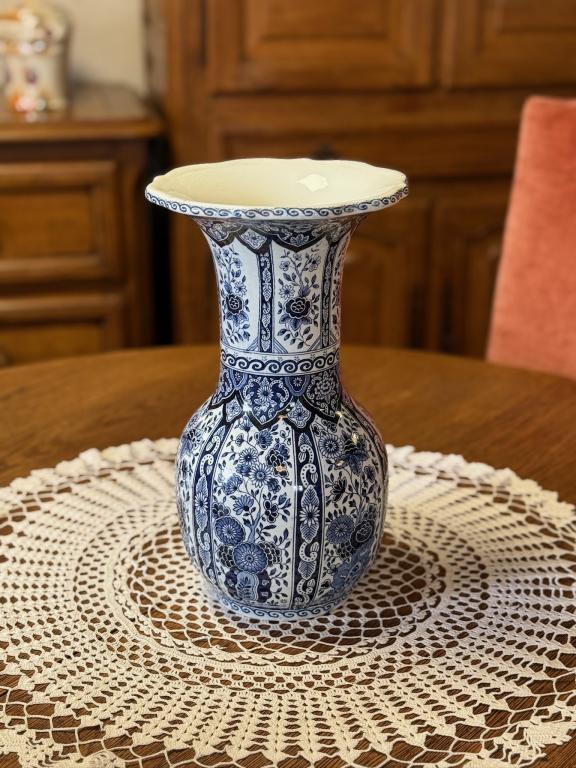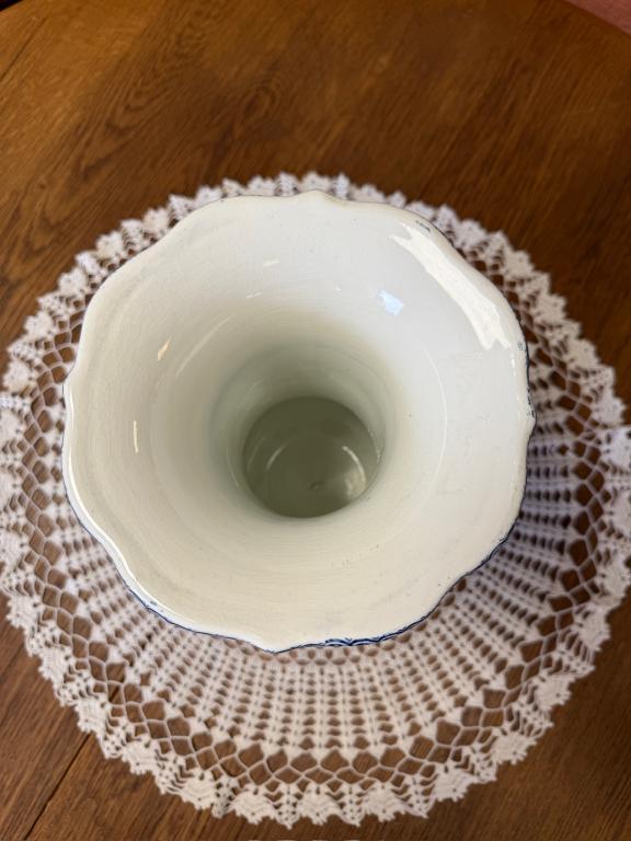 Sinise dekooriga suur fajansist lillevaas. Olemas kaks ühesugust.