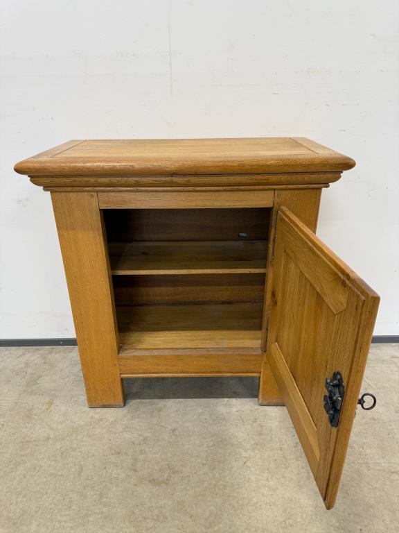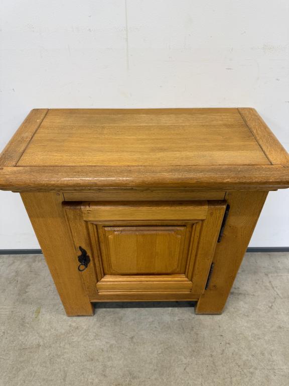 Heledast tammest soliidne kapp. Lukk töökorras, võti olemas. Leidub kulumis- ja kasutusjälgi, kuid üldmulje korralik.