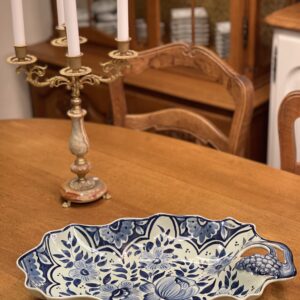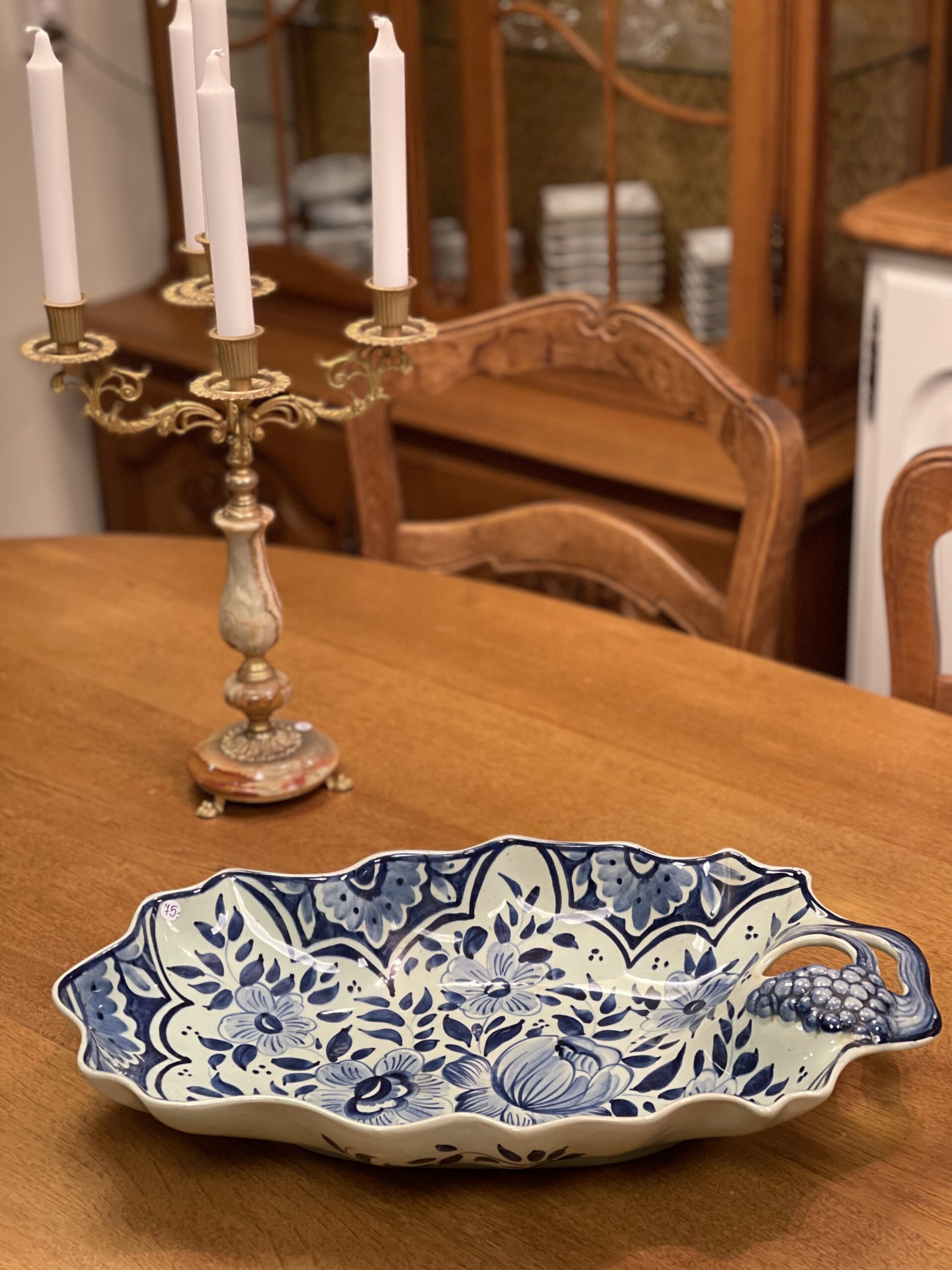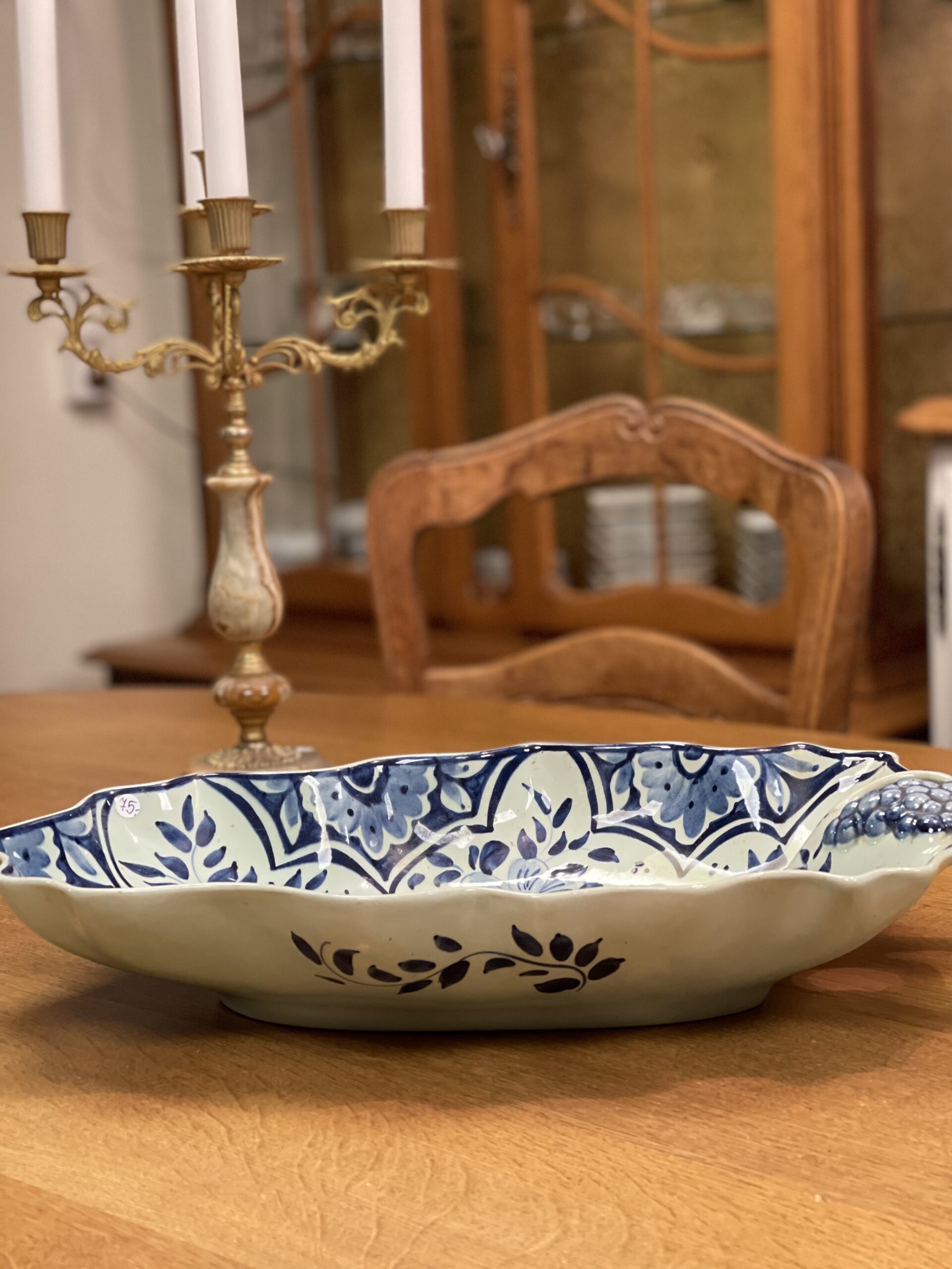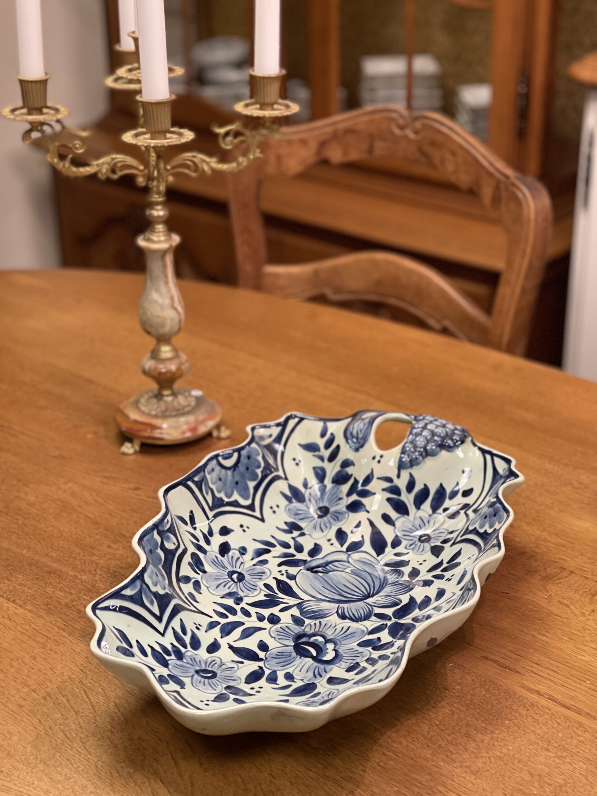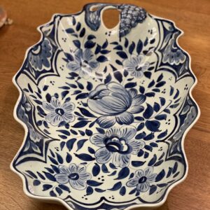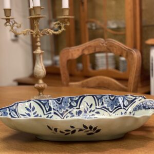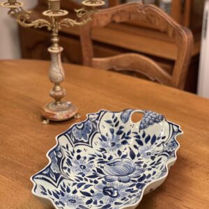 Suur sinise dekooriga viinamarjadega vaagen.