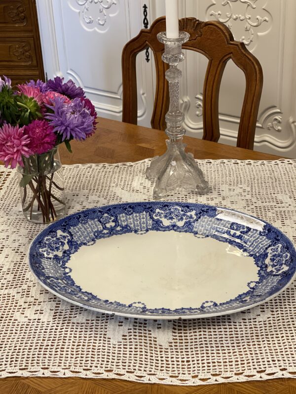 Suur sinise dekooriga vaagen.