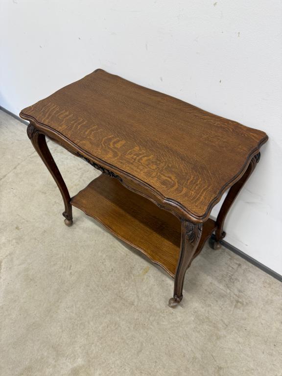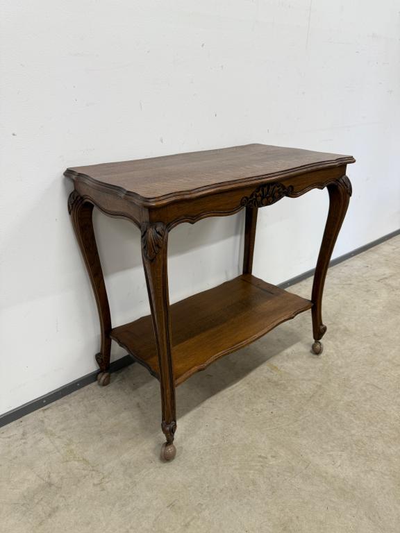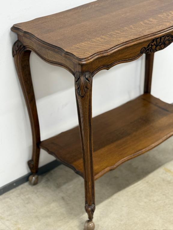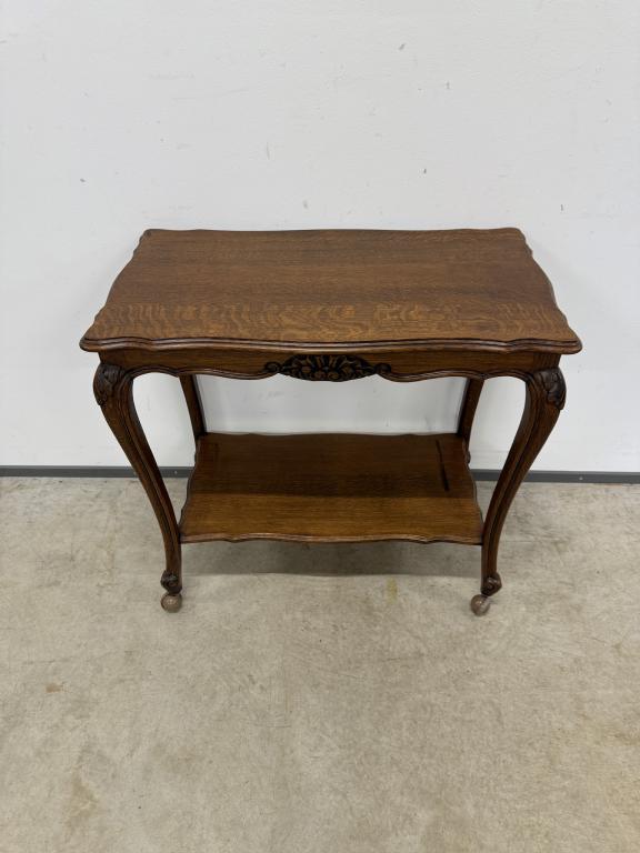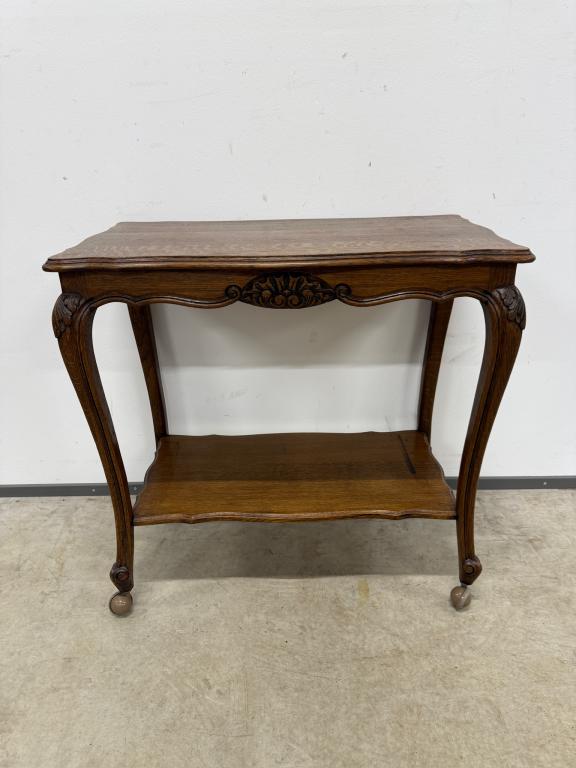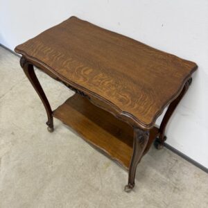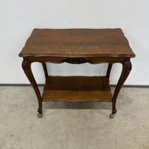 Ilusa vormiga ratastel tammest laud. Kaunid nikerdused raamil. Rattad liiguvad kergesti, kuid soovi korral võimalik nad ka eemaldada. Leidub väiksemaid kulumis- ja kasutusjälgi, kuid üldmulje väga hea.