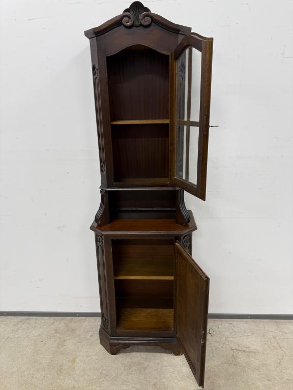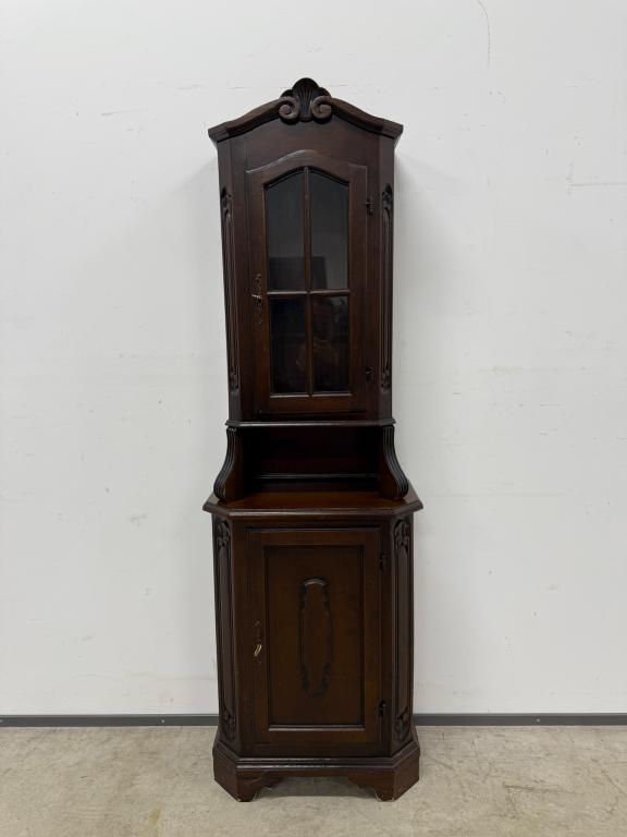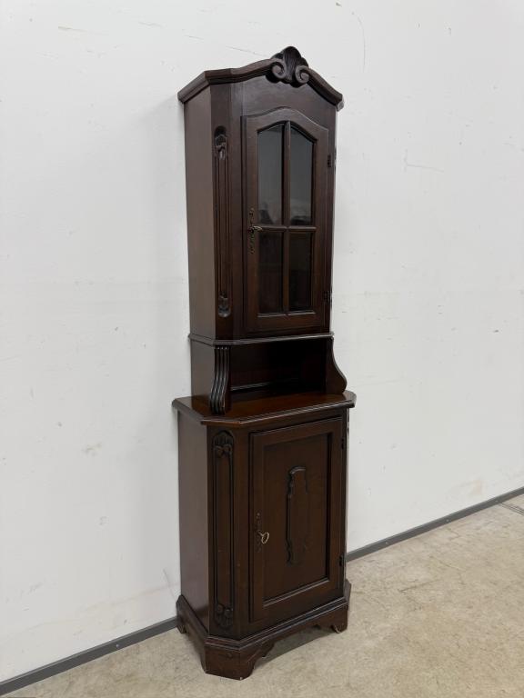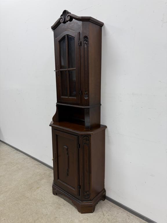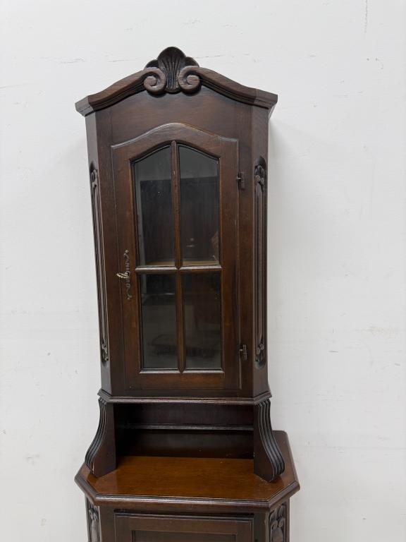 Kompaktse suurusega vitriinkapp. Leidub kulumis- ja kasutusjälgi, kuid üldmulje korralik. Transport kahes osas.