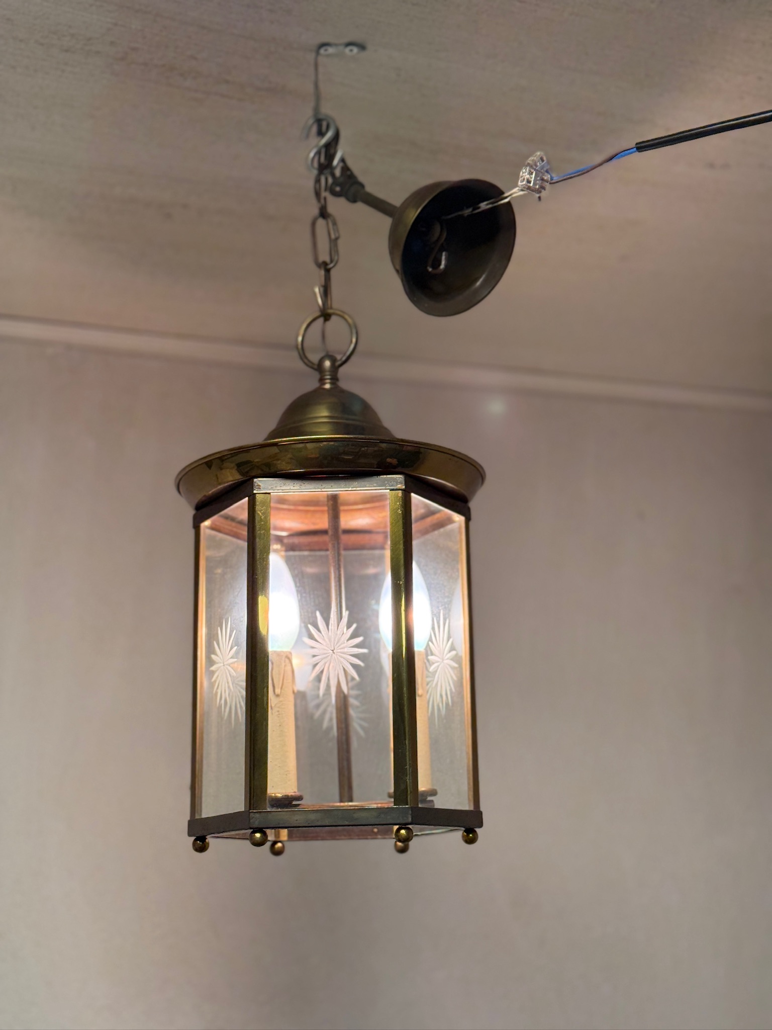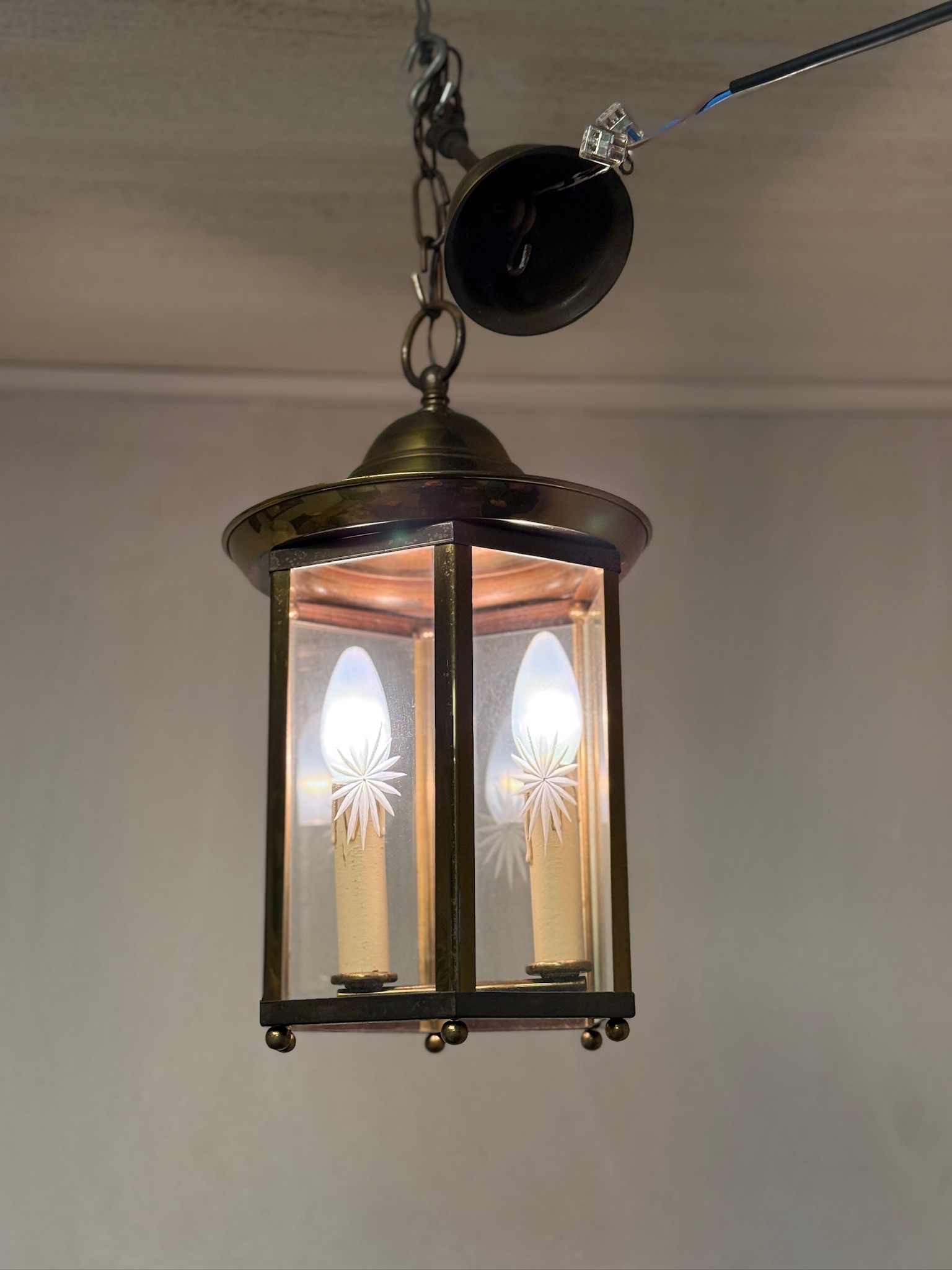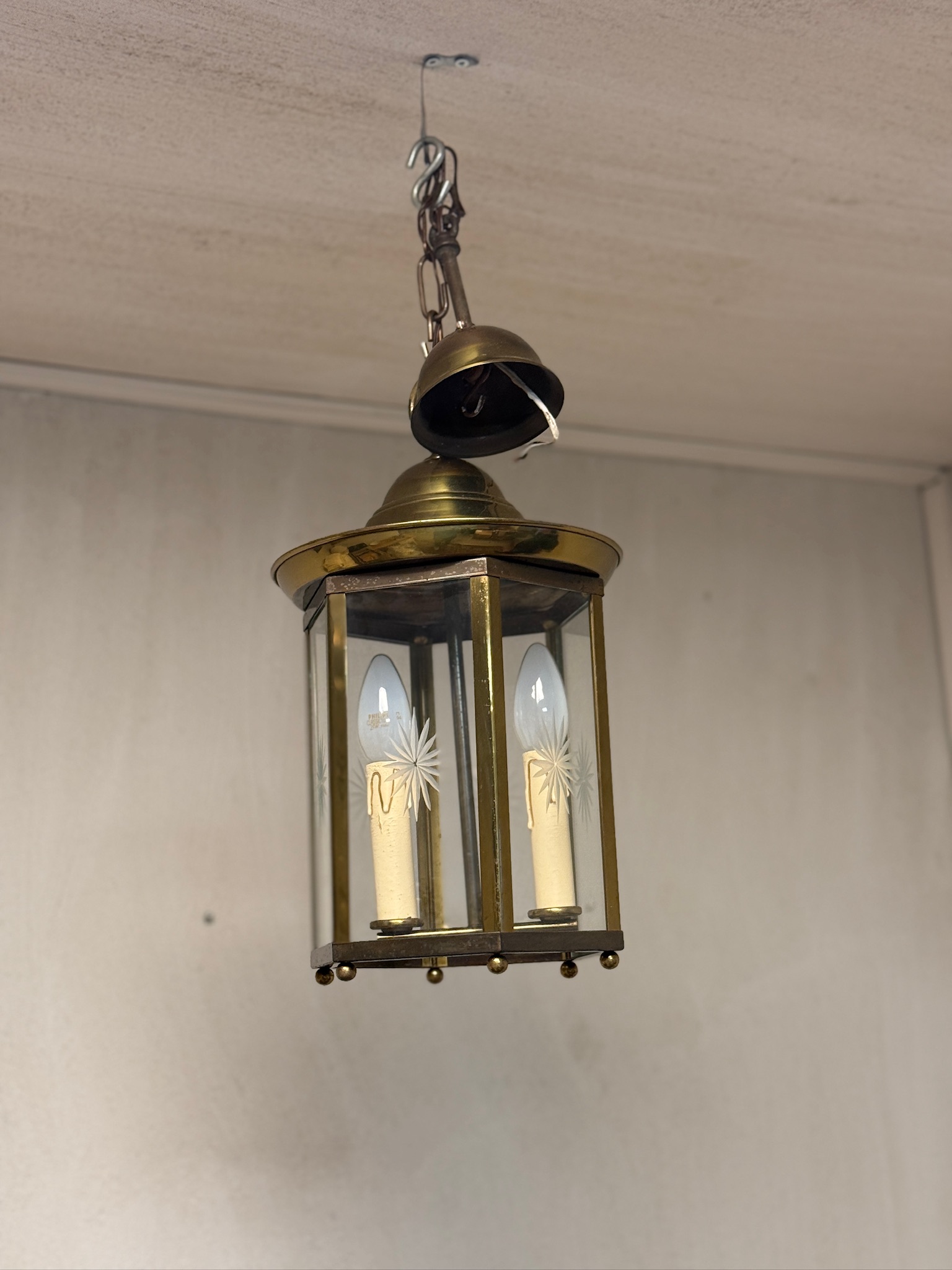 Messingist raamiga kahe pirnipesaga laevalgusti.