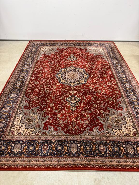 Ilusa tumepunase põhitooniga suur ja paks villavaip. Väga tiheda koega, korralik.