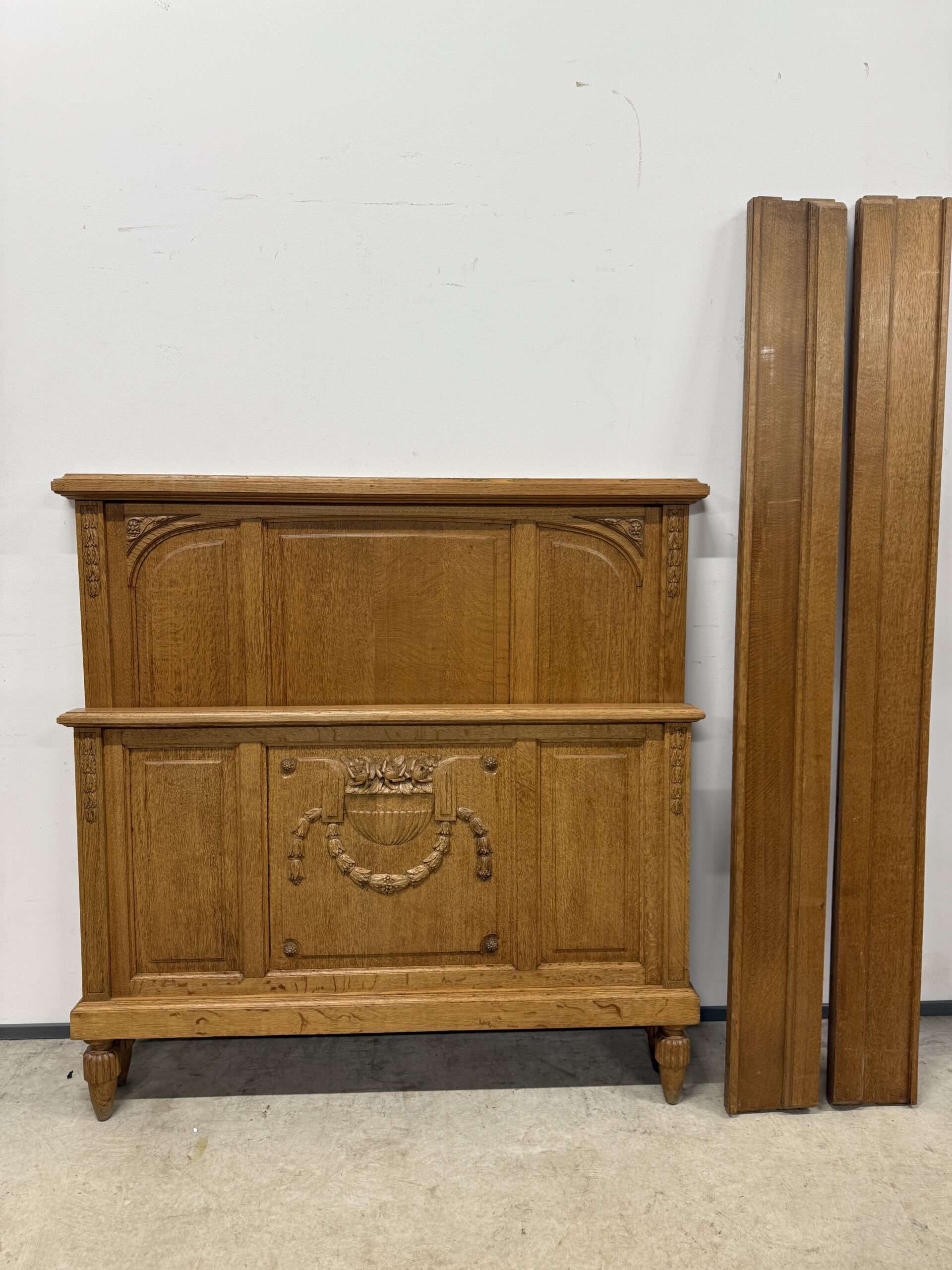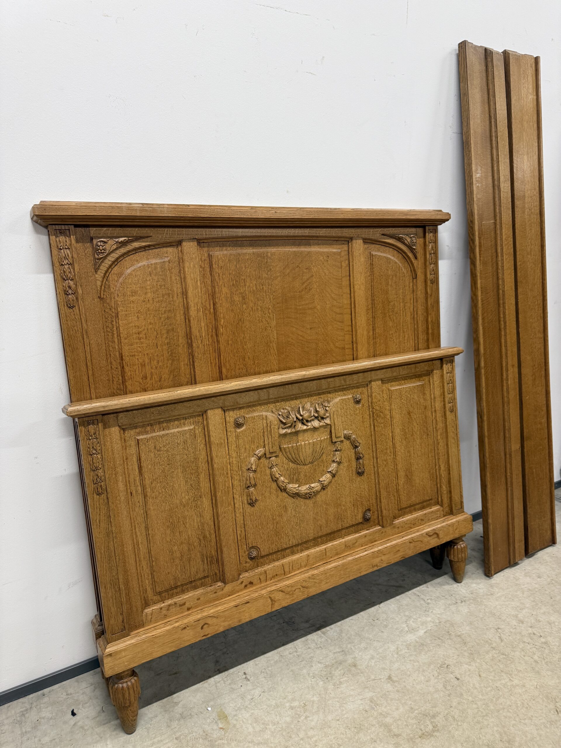 Imeilusa roosinikerdusega tammest voodiraam. Peatsi kõrgus 143 cm, jalutsiosa kõrgus 93 cm. Sobib madratsile mõõduga 120 x 200 cm.