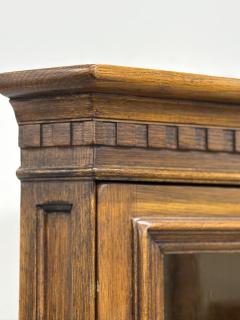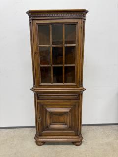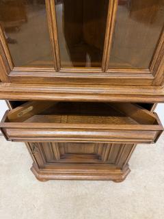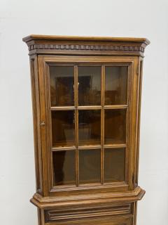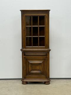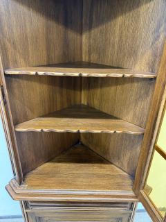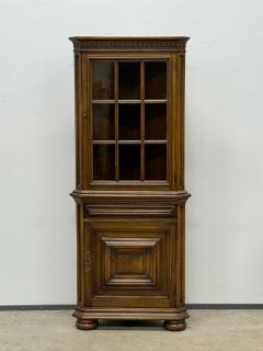 Väga ilusa vormiga tammest nurgavitriin. Klaasi taga kena loogelise servaga riiulid. Eestvaates laius 78 cm, nurga külgede laius 55 cm. Sügavus 47 cm. Lukud töökorras, võtmed olemas.