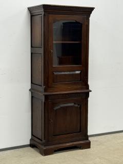 Üleni tammest kitsas vitriinkapp. Väga heas seisukorras. Lukud töökorras, võtmed olemas. Transport kahes osas.