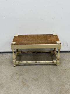 Valgeks värvitud raamiga pikk pink. Leidub kulumis- ja kasutusjälgi.