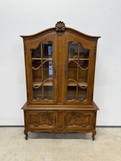 Uhkete nikerdustega tammest raamiga vitriinkapp. Sees reguleeritavate vahedega puidust riiulid. Leidub väiksemaid kulumis- ja kasutusjälgi, kuid üldmulje väga hea. Lukud töökorras, võtmed olemas. Transport kahes osas.